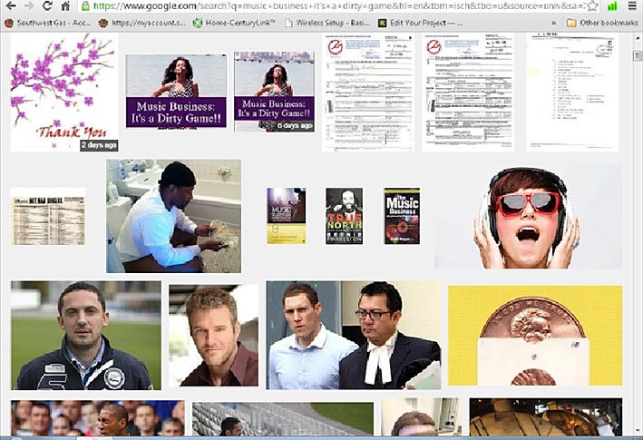 Google Image's Search under 'Music Business: It's a Dirty Game' shows images taken from my book and then immediately list this idiot on the commode, counting money...and...a penny listed a little ways down...'I wonder why that is?'